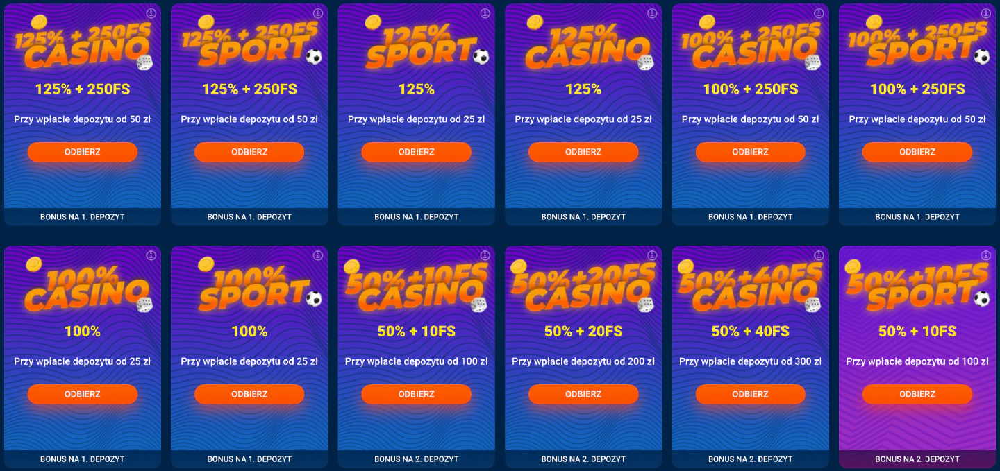 | Bonus na Start (PL) | 125% do 1400 PLN + 250 Darmowych Spinów (sprawdź aktualne warunki) |